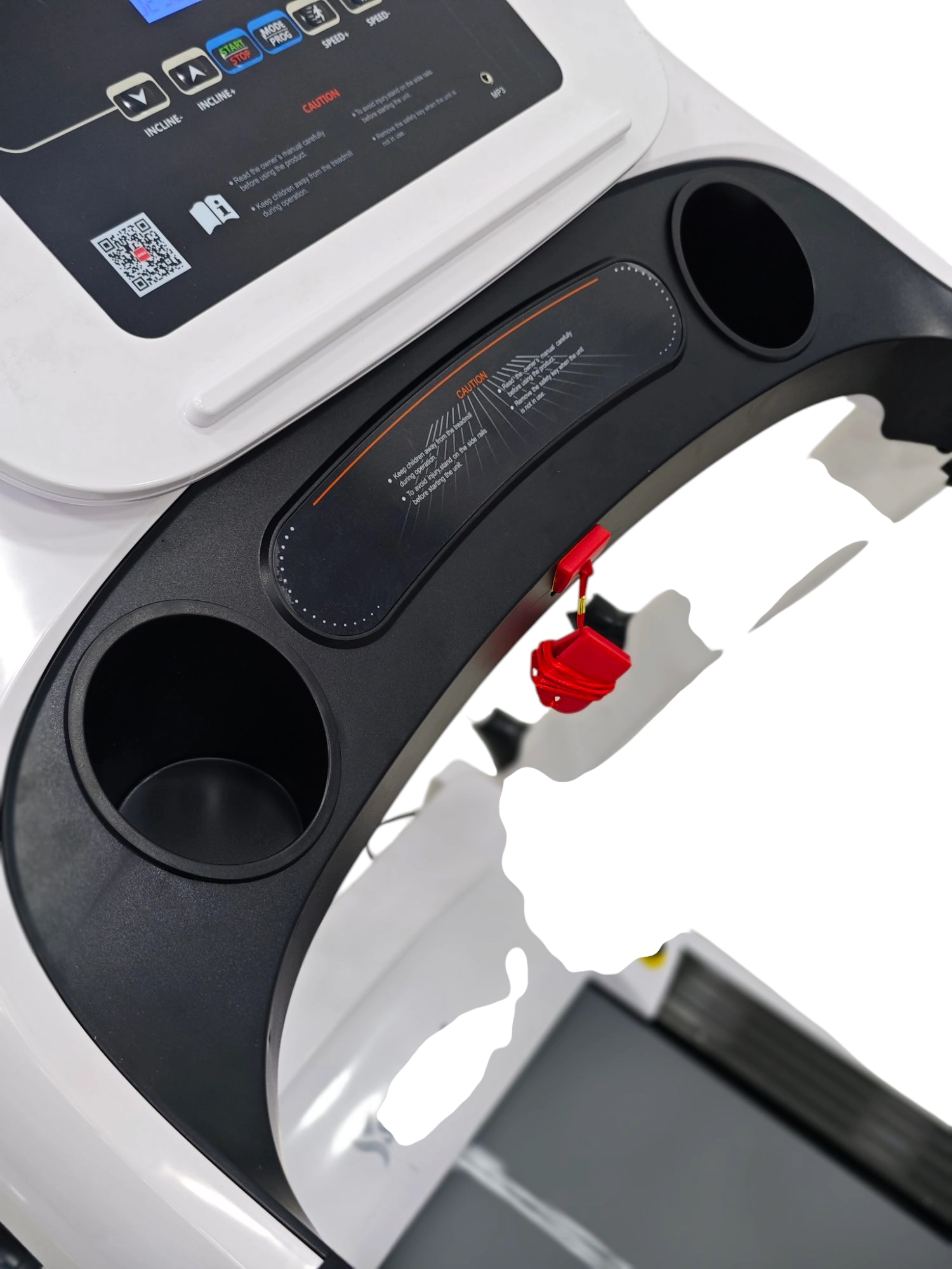 Maintenance Facile : Plus besoin de lubrification manuelle fastidieuse. Grâce à son moteur de graissage intégré, il suffit d’appuyer sur un bouton dédié sur l’écran pour lubrifier le tapis uniformément. Cela prolonge la durée de vie du moteur et de la bande de course.